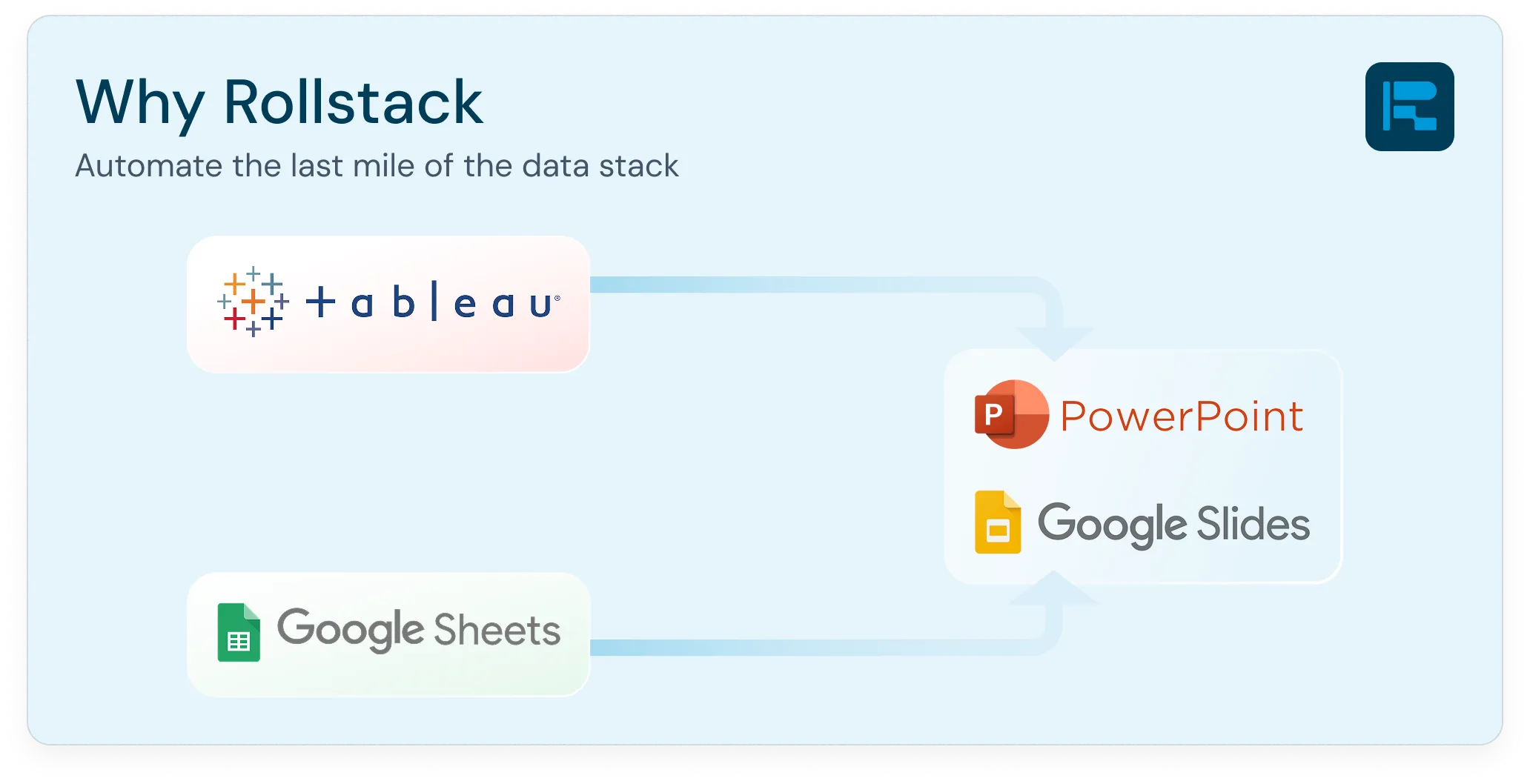 SoFi sought a solution that could bridge the gap between their BI tools and the presentation layer. Rollstack proved to be the "immediate no-brainer" they needed. Rollstack connects directly to SoFi's Tableau dashboards and Google Sheets. As a result the teams were able to